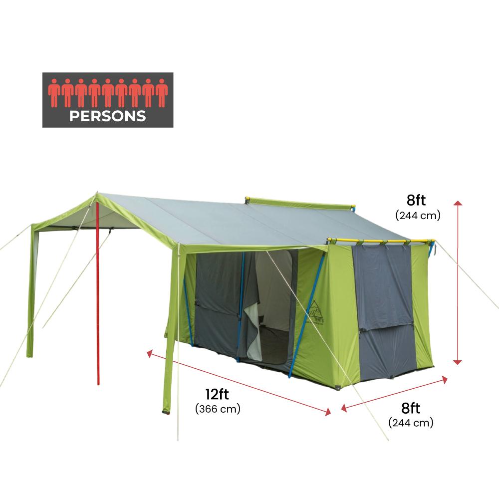 Awning: 10 x 8 x 7.5, Main Tent: 12 x 8 x 7.5 ft |